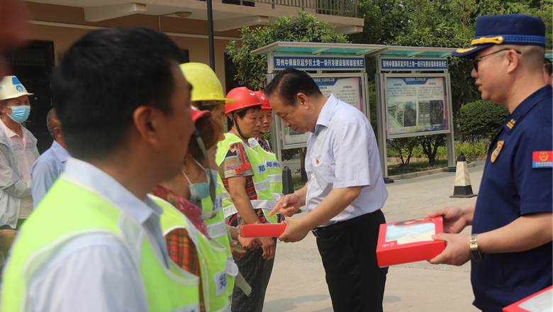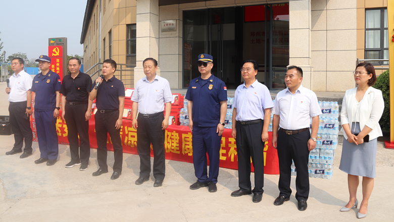 進(jìn)入夏季以來(lái),持續(xù)出現(xiàn)的高溫天氣,給奮戰(zhàn)在建設(shè)一線(xiàn)的施工人員帶來(lái)嚴(yán)峻考驗(yàn),廣大職工不畏酷暑,堅(jiān)守崗位,辛勤付出。為做好廣大職工的防暑降溫工作,切實(shí)保護(hù)職工身體健康,6月11日,鄭州市總工會(huì)、鄭州市消防救援支隊(duì)到鄭州地產(chǎn)集團(tuán)西流湖公司中原新區(qū)土地一級(jí)開(kāi)發(fā)項(xiàng)目指揮部開(kāi)展主題為“送清涼、送安全、送健康、促和諧”的夏季送清涼活動(dòng)。鄭州市一級(jí)巡視員、市總工會(huì)黨組書(shū)記、主席趙新中,市消防救援支隊(duì)副支隊(duì)長(zhǎng)、滅火救援指揮部部長(zhǎng)李隆,市總工會(huì)副主席宋少丹,鄭州地產(chǎn)集團(tuán)有限公司監(jiān)事會(huì)主席、工會(huì)主席李靜波及西流湖公司黨支部書(shū)記、董事長(zhǎng)、總經(jīng)理吉獻(xiàn)亮等領(lǐng)導(dǎo)出席活動(dòng)?;顒?dòng)由西流湖公司副總經(jīng)理昌磊主持。