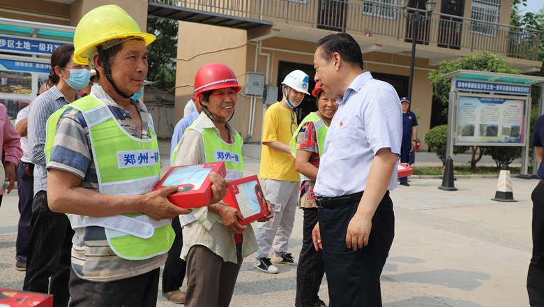 為切實(shí)做好防暑降溫工作,給項(xiàng)目工友送去清涼,鄭州市總工會(huì)精心準(zhǔn)備了夏季防暑降溫用品和礦泉水。市總工會(huì)、消防救援支隊(duì)領(lǐng)導(dǎo)為一線(xiàn)職工送去防暑降溫用品,慰問(wèn)看望一線(xiàn)職工,將工會(huì)組織的關(guān)懷送到職工心坎上。